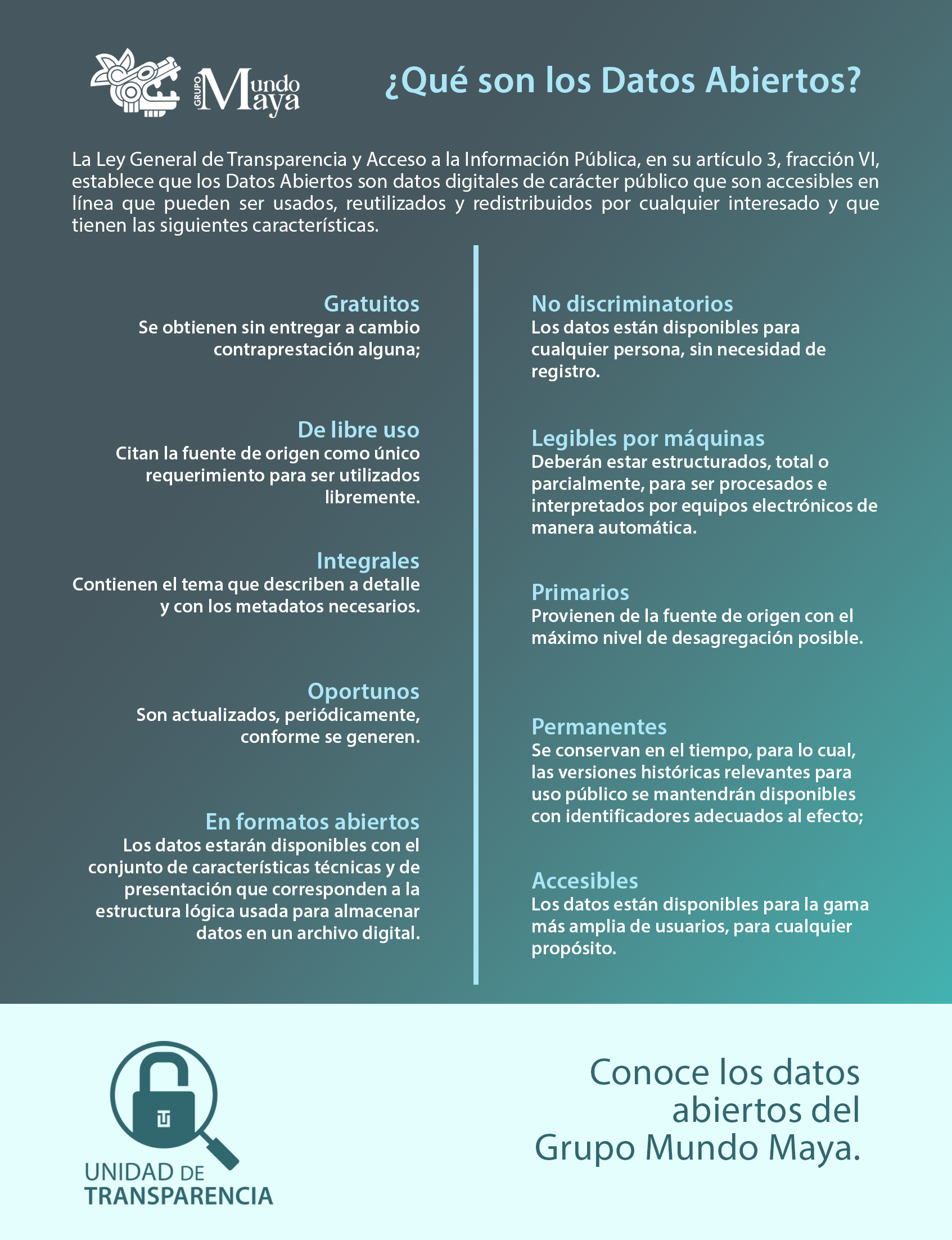 Los datos personales en posesión del Grupo Mundo Maya, son tratados y protegidos de acuerdo con la Ley General de Protección de Datos Personales en Posesión de Sujetos Obligados y Lineamientos Generales de Protección de Datos Personales en Posesión de Sujetos Obligados .